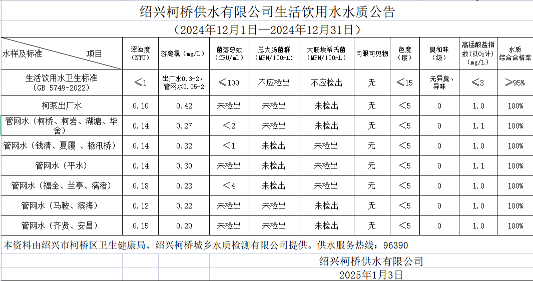 MK在线注册水质公告(2024年12月1日—2024年12月31日)