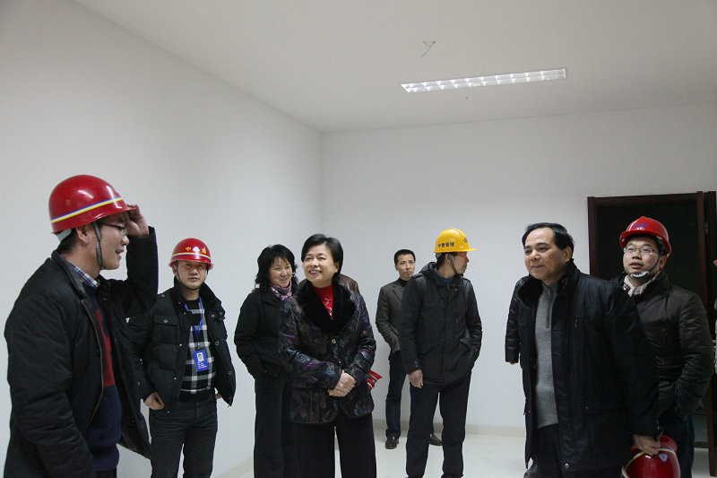 ,县委副书记马芳妹在县机关事务管理局领导的陪同下检查水务大厦装修工地。集团单宝子、张则再等领导陪同。