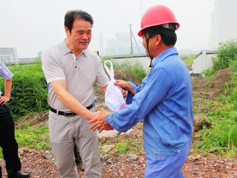 上午,集团董事长倪阿泉、总经理单宝子等领导班子成员兵分三路高温慰问坚守岗位的一线职工,为他们送上了消暑饮料及毛巾等防暑用品,给他们送上一份清凉,捎去一份问候。