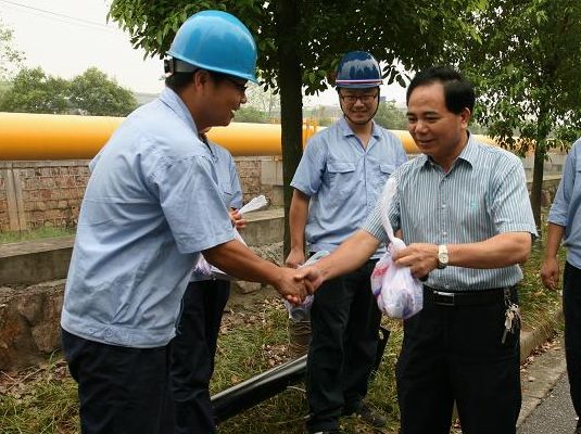 图为集团单总经理慰问绍兴水处理公司机修员工