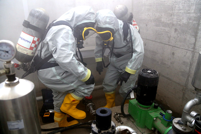 江滨水处理公司:“双氧水泄露反事故”应急演练