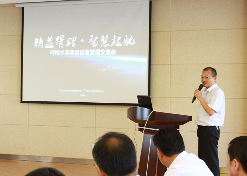 在会议开始前,与会领导现场参观了绍兴水处理公司技能大师工作室、维修车间、仓库、离心机车间等设备管理现场。在随后的会议上,绍兴水处理公司总经理劳红标做题为《精益管理 智慧启航》的设备管理经验介绍。