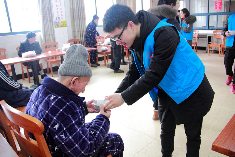 服务中心内,其乐融融,团员青年们将慰问品一一送到老人们手中,陪着老人家们聊家常、吃汤圆,欢声笑语汇成一片。老人们对大家的到来表示感谢,感谢大家从百忙之中和他们共度佳节,为他们带来了欢乐。