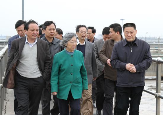 4月3日下午,由全国政协原副主席、中国工程院院士钱正英任组长的中国工程院“浙江沿海项目组”一行到水处理公司调研。市委副书记、市长钱建民,县委副书记、县长孙云耀,副县长丁生产,县水务集团总经理单宝子、水处理公司主要领导等陪同。 调研组一行实地踏看污水处理二期工程曝气池、沉淀池,亲身体验污水处理前、后的水质变化,并听取绍兴市、县污水进厂水质、污水处理系统运营和运作等有关情况的汇报。据悉,中国工程院“浙江沿海项目调研组”此行主要就浙江省沿海及海岛综合开发战略研究开展专项调研。图为调研组一行在曝气池上踏看。