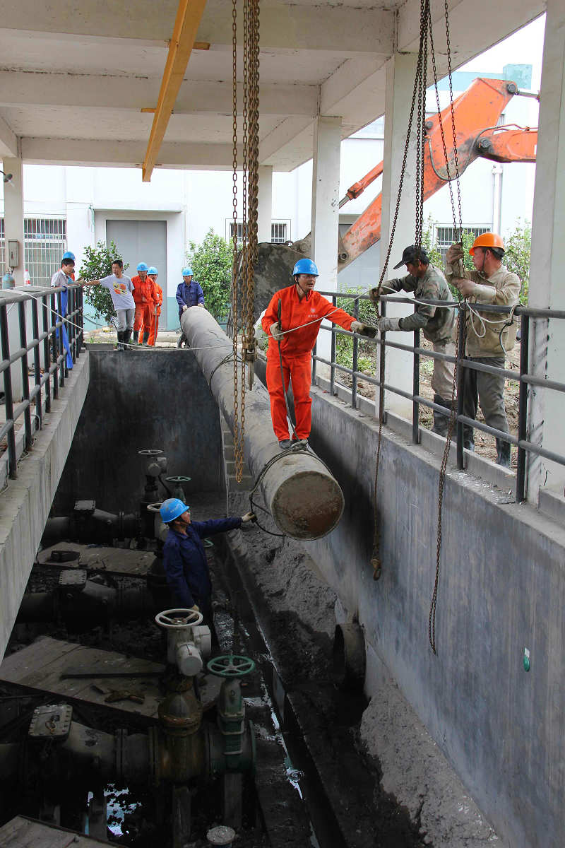 5月16日上午8:00开始,排水公司抢修人员对常年受酸性污水腐蚀的滨海北侧1#泵站的80米出水总管进行突击更换。该污水总管的更换将直接影响到周边科瑞化工、怡中印染等22家企业的生产,为把受影响企业的损失减少到最低程度,排水公司制订了详细、周密的施工方案,计划连续施工96个小时打好这场硬仗。
