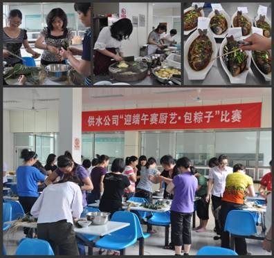 下午,供水公司妇委会在公司食堂内举行了“迎端午,女职工赛厨艺、包粽子比赛”,共有40多名女职工参加。
