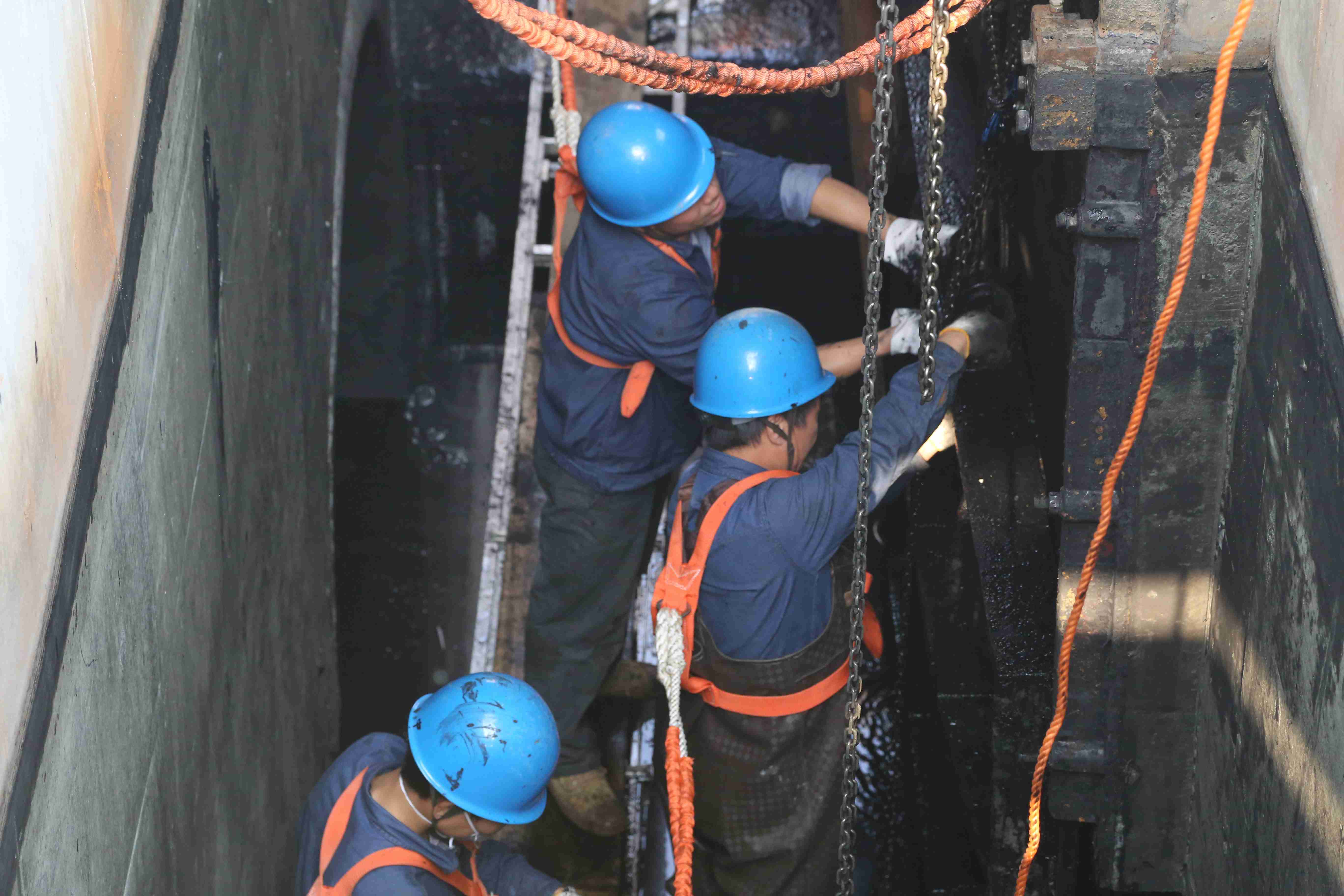 本次维修工作从抽水冲洗、池底通风到恢复进水,历时12小时,公司维修人员在池底连续工作超过7个小时,面对池底有限空间内环境恶劣及工作强度大等诸多困难迎难而上,充分体现了江滨人对工作的责任心与积极性。