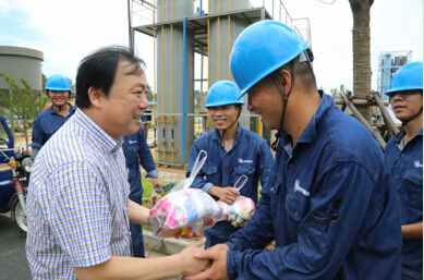 7月23日,集团党委副书记高小林到公司中试现场及泥处理车间慰问一线职工,送上毛巾、消暑饮料等防暑用品。